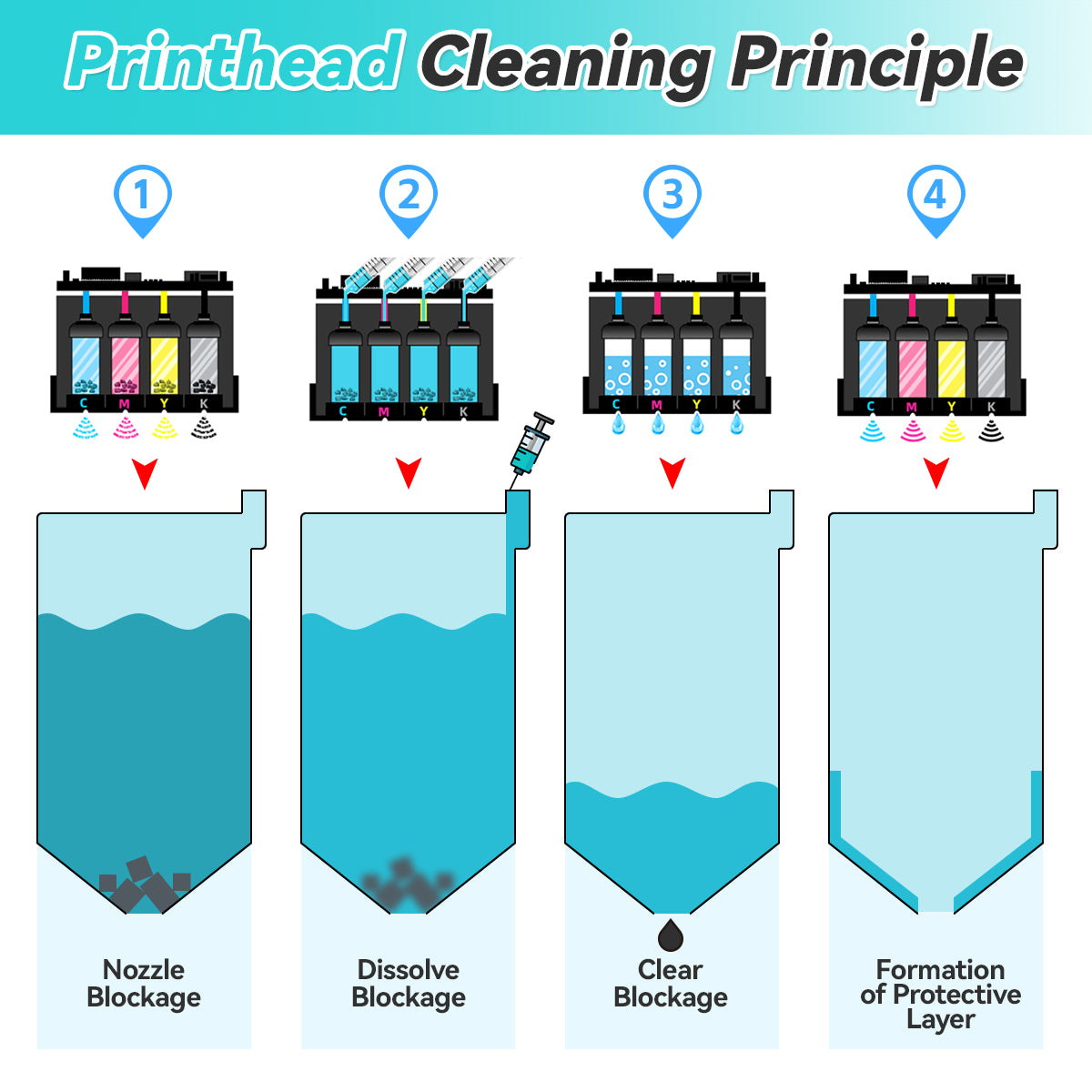 Forms a protective layer during cleaning to minimize wear and prevent future blockages—ideal for long-term printer maintenance.