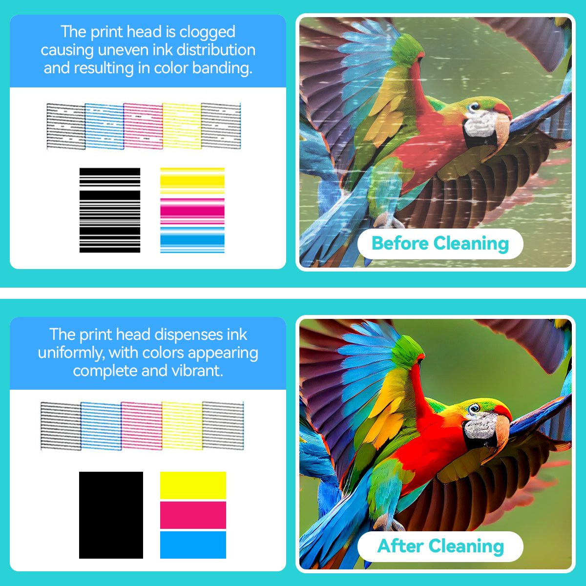 Once nozzles are cleared, ink flows smoothly, resulting in sharper detail, richer colors, and more uniform printing performance.