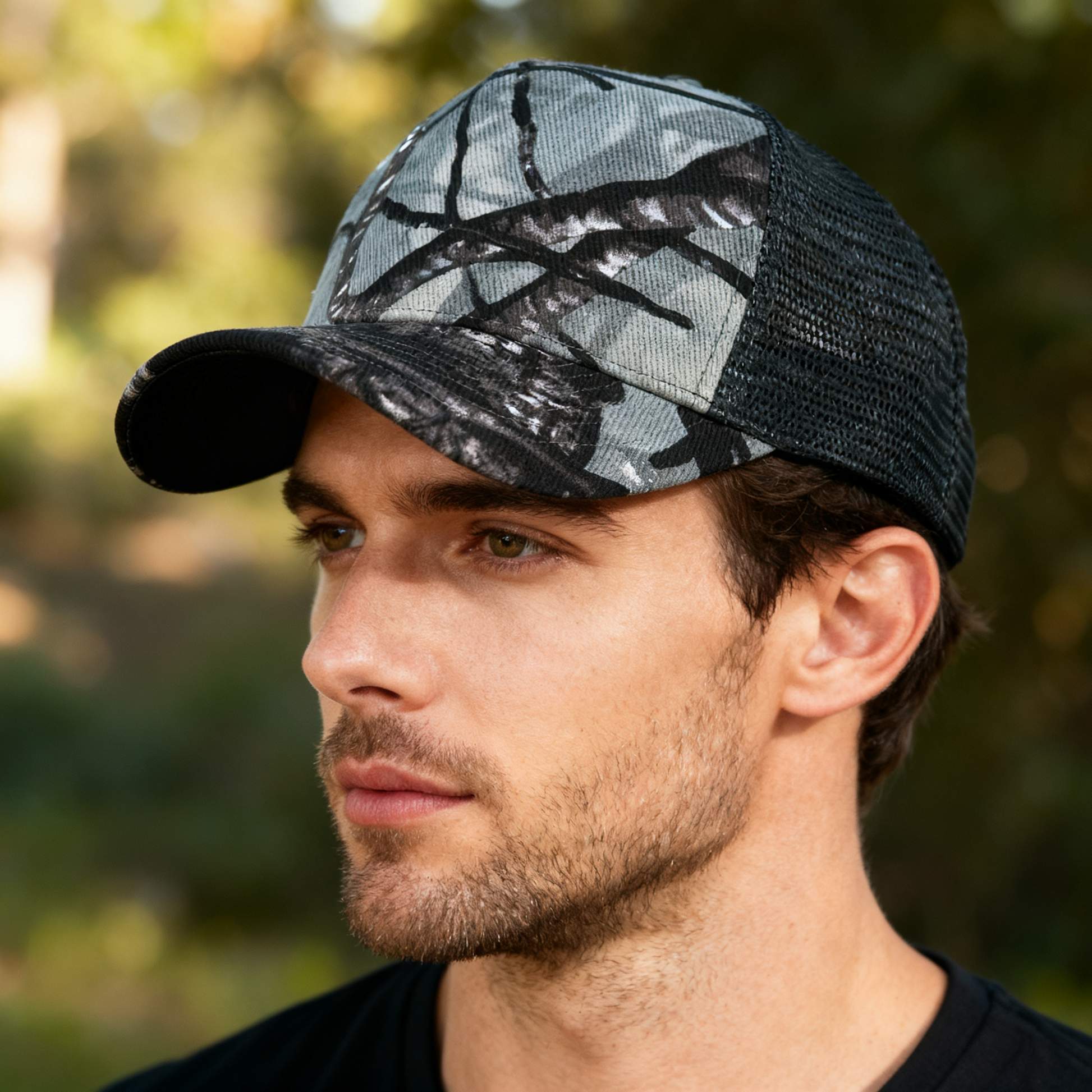 Designed for both outdoor adventures and everyday wear, this camouflage mesh trucker hat combines breathable comfort with a modern, versatile look.