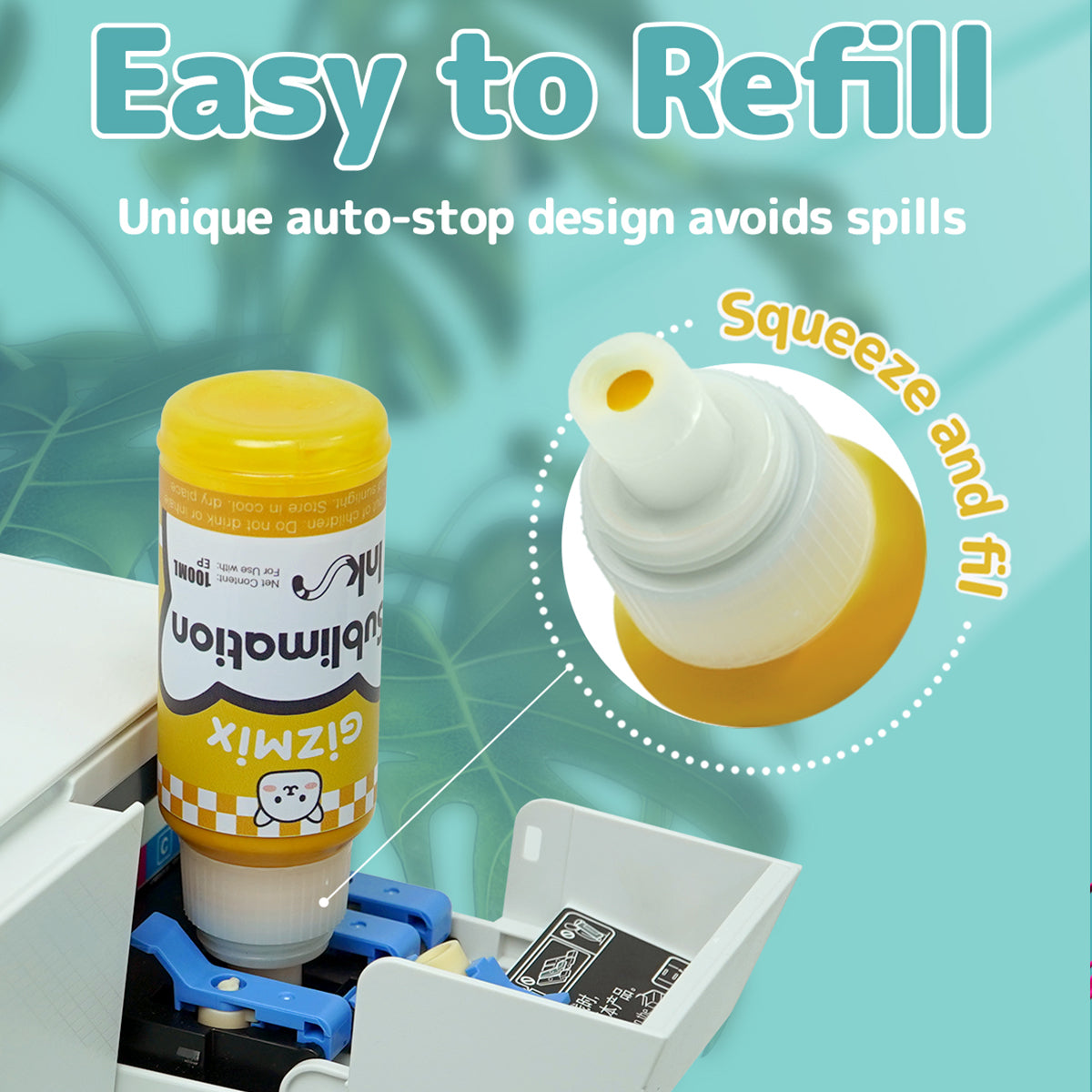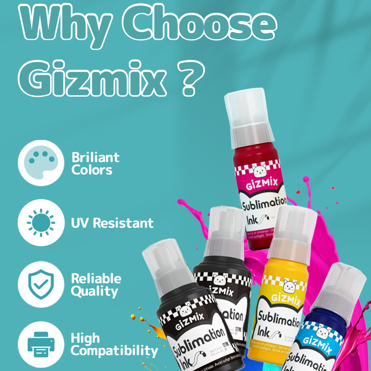 GIZMIX Sublimation Ink – Vibrant Colors, Easy Refill, Wide Compatibility