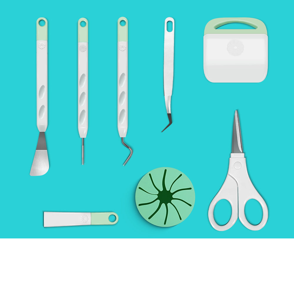 Proveedor:GIZMIXJuego de 6 herramientas para desmalezar vinilos GIZMIX: herramientas de precisión para Cricut y Silhouette, con recolector de recortes y bolsa de almacenamiento.