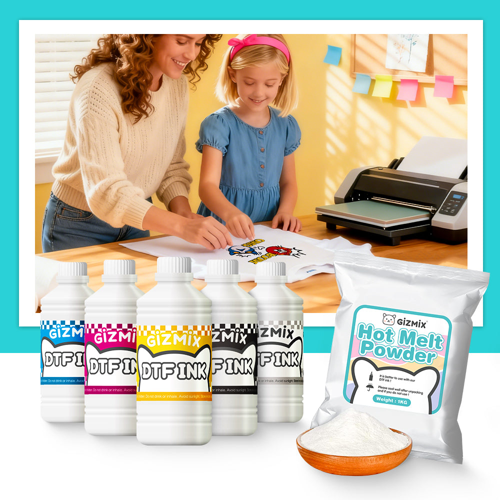 Proveedor:GIZMIXTinta DTF GIZMIX de 1000 ml a todo color (CMYK + blanco): alta densidad de color, fluidez uniforme, sin sedimentos, duradera y resistente al lavado para todas las impresoras DTF.