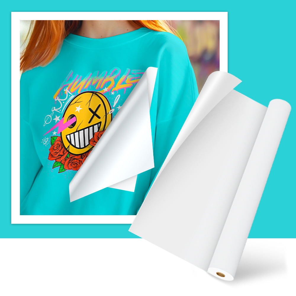 Proveedor:GIZMIXRollo de papel de transferencia DTF: 33 cm, 45 cm, 61 cm × 100 m | Papel de transferencia térmica de alta adherencia, lavable y de despegado en frío para impresión de prendas