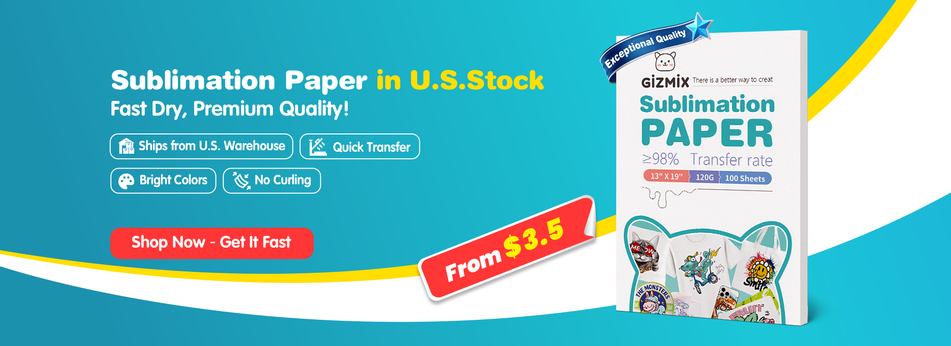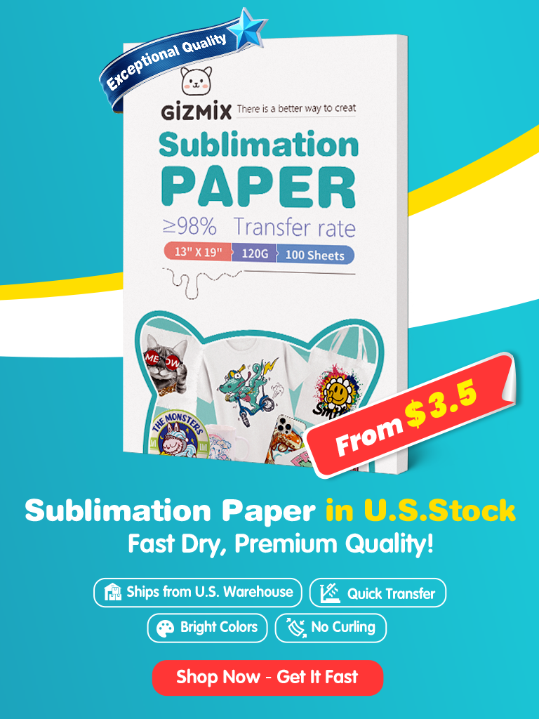 Proveedor:GIZMIXPapel de sublimación de alta transferencia GIZMIX 120G ≥98% Tasa de transferencia Secado rápido Sin atascos Para telas ligeras y sustratos duros recubiertos Múltiples tamaños 100 hojas