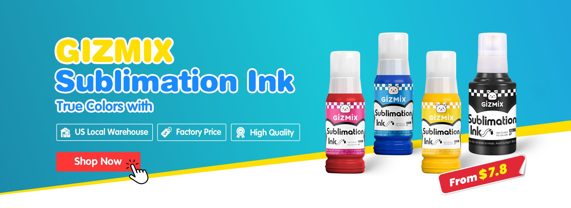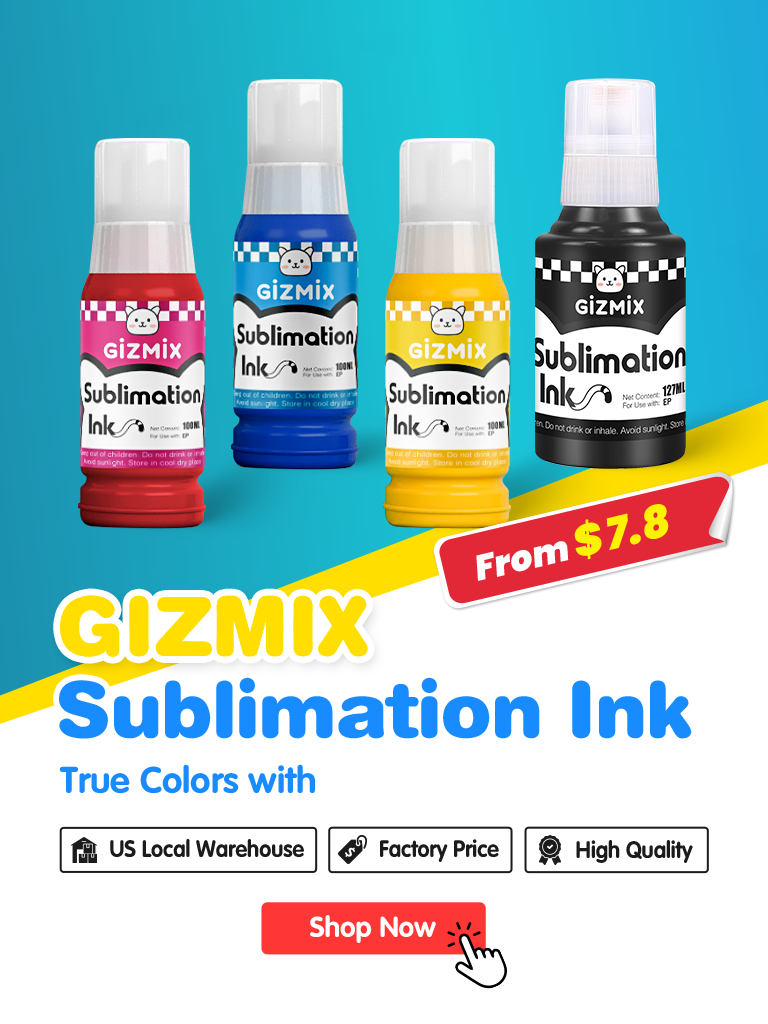 Proveedor:GIZMIXRecarga de tinta de sublimación GIZMIX de 400 ml: tinta CMYK brillante para camisetas, tazas y manualidades | Compatible con Epson EcoTank