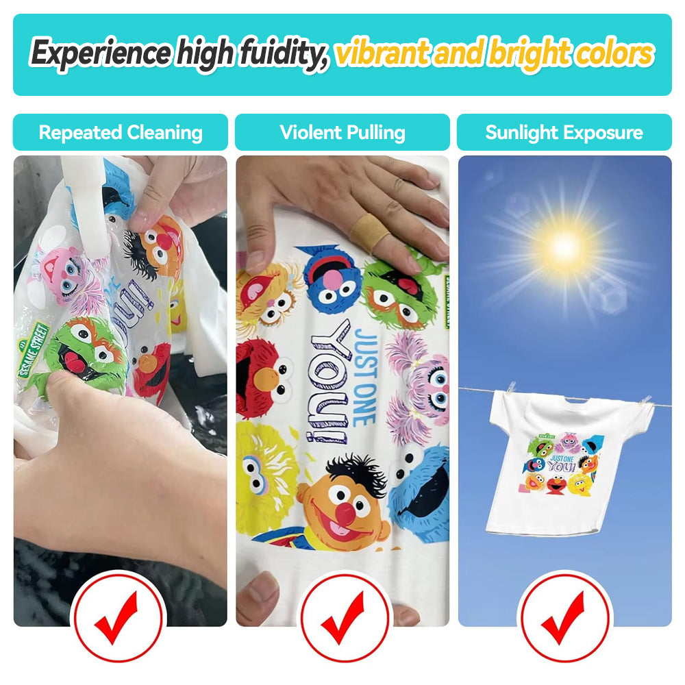 Las impresiones se mantienen nítidas y claras después de lavados repetidos sin decolorarse, agrietarse ni pelarse.