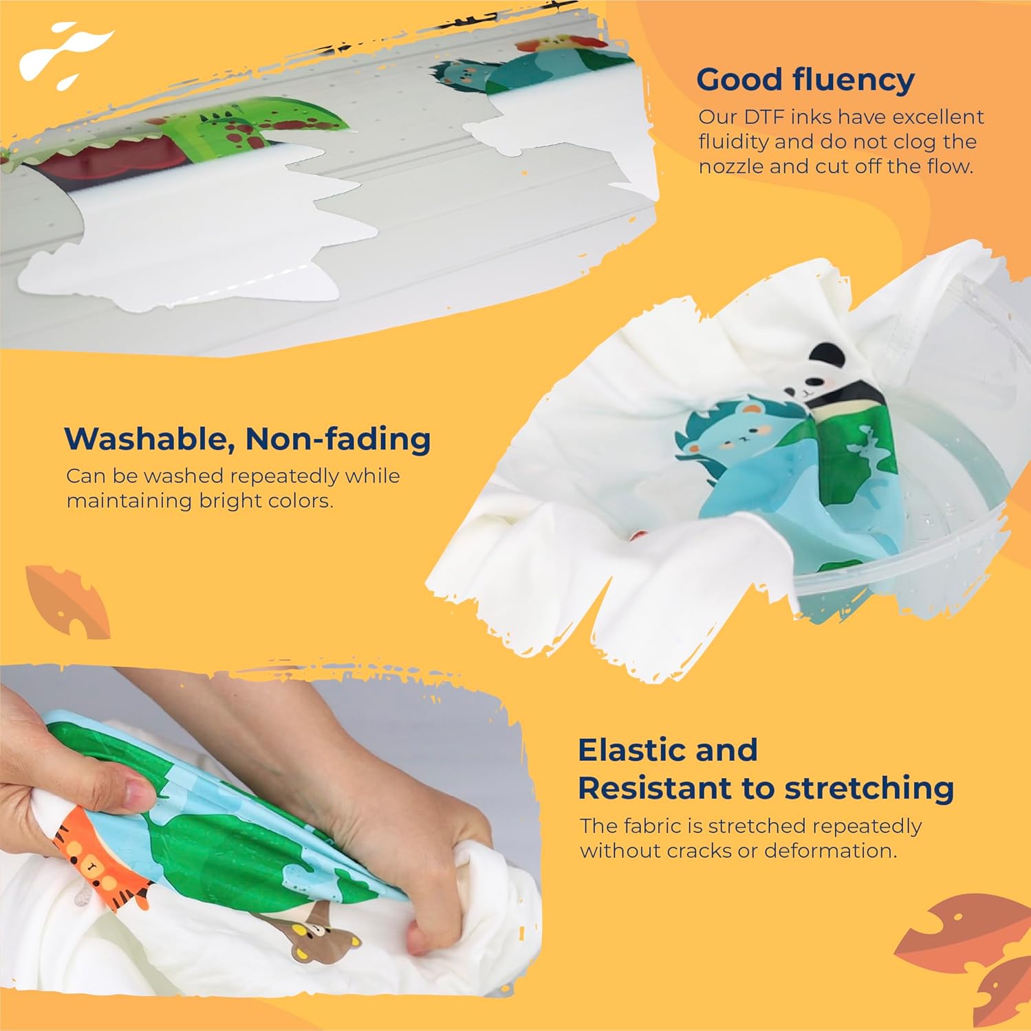 El flujo de tinta suave garantiza una impresión estable, reduce los bloqueos de las boquillas y mantiene su impresora DTF funcionando de manera eficiente, incluso durante largas sesiones de producción.