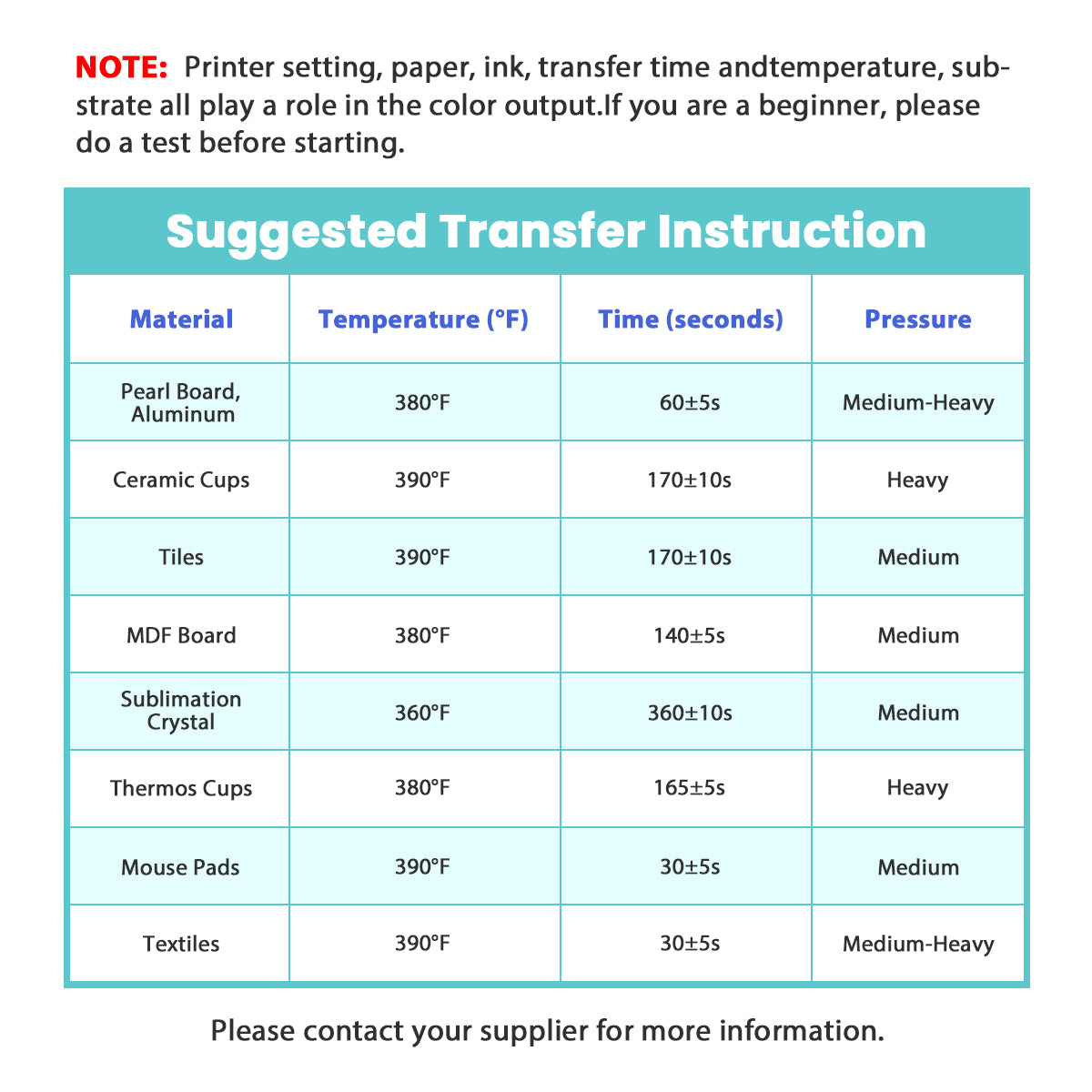 | Alfombrillas de ratón | 390°F | 30±5 s | Medio |