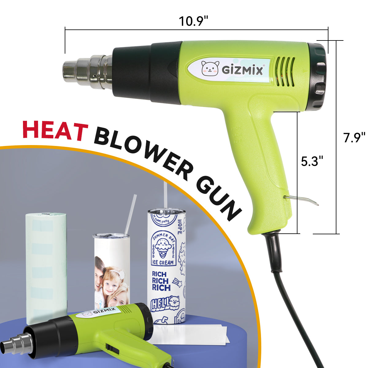 The GIZMIX Heat Blower Gun is designed for makers, DIY creators, and sublimation artists who need power, precision, and reliable heat control. Equipped with a powerful 1800W motor, this heat gun delivers rapid heating, strong airflow, and consistent performance—perfect for applying shrink wrap to tumblers, preparing mugs for sublimation, crafting projects, and more.