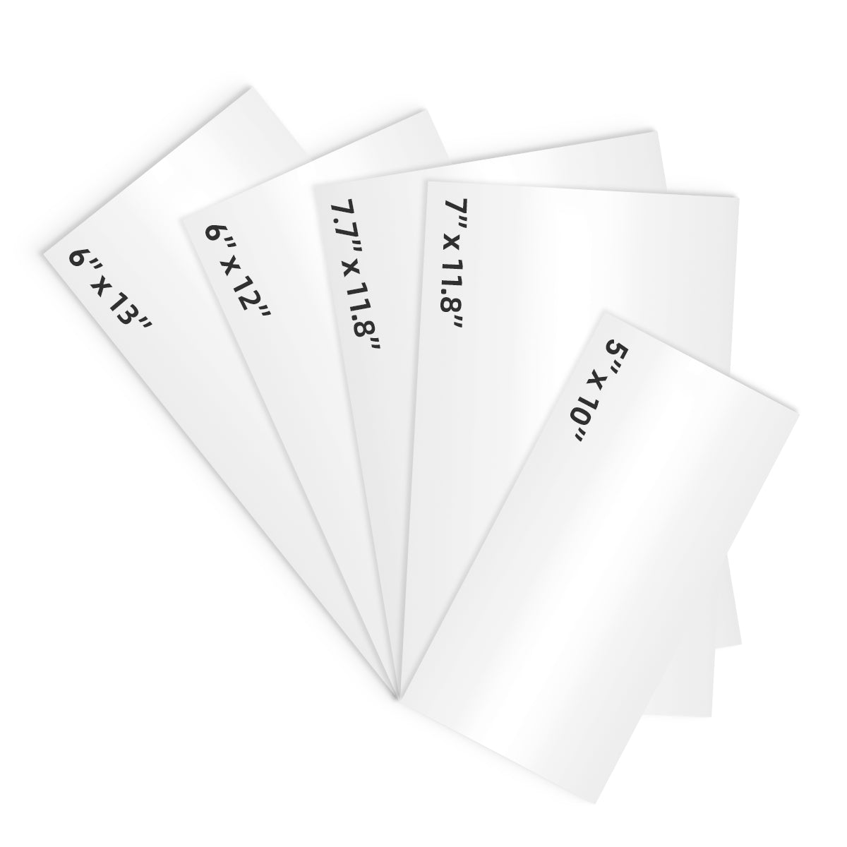 Available Sizes: 6×13", 6×12", 7.7×11.8", 7×11.8", 5×10" - Features: Even shrink, no bubbles, no cracking, clear high-quality transfer